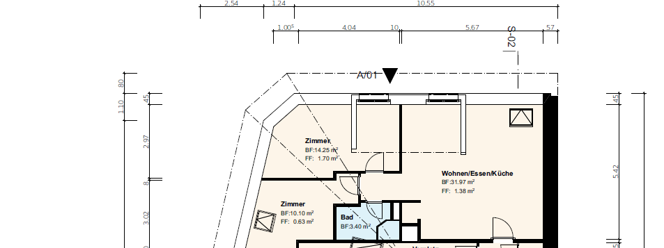 - Plattenboden in der Küche, Wohnzimmer und Nasszelle